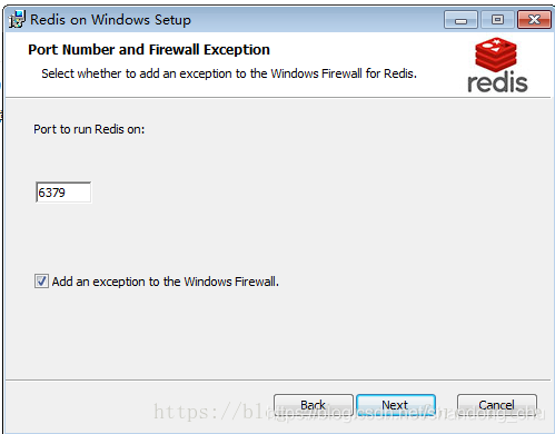 5、端口默认6379,并选择防火墙例外,从而保证外部可以正常访问Redis服务。