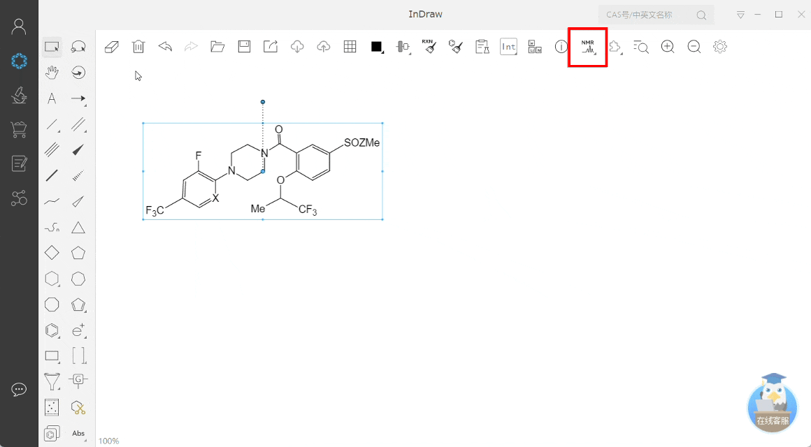 1. 点击纵排工具栏“矩形选框”,选中结构式;