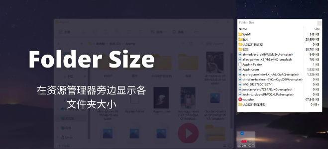 Folder Size是一款资源管理软件,它能够在文件夹旁边吸附一个小窗口,显示各文件夹大小,之后你就可以直观地了解文件夹的大小和实际占用空间,并计算出空间的浪费程度。