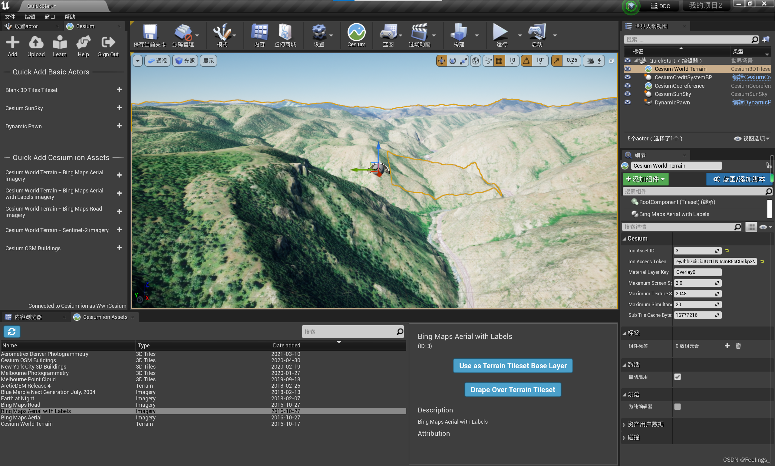 CesiumForUnreal 混的就比 CesiumForUnity 好很多了,毕竟在视效方面 CesiumForUnreal 利用 Unreal Engine 强大的渲染引擎和工具集,提供了逼真的地理空间可视化和交互功能,视觉效果上比 CesiumForUnity 好很多。当然,CesiumForUnreal 比较明显的问题就是存在一定学习门槛,同时学习曲线也比较陡峭,虚幻引擎和 C++ 对于大部分 GIS 开发人员来说都是完全陌生的东西,想要从头开始了解还是一件非常费时费力的事情。不过考虑到还有蓝图这种比较方便的手段给开发人员 “偷懒” 用,CesiumForUnreal 也算是一种比较好的选择了。