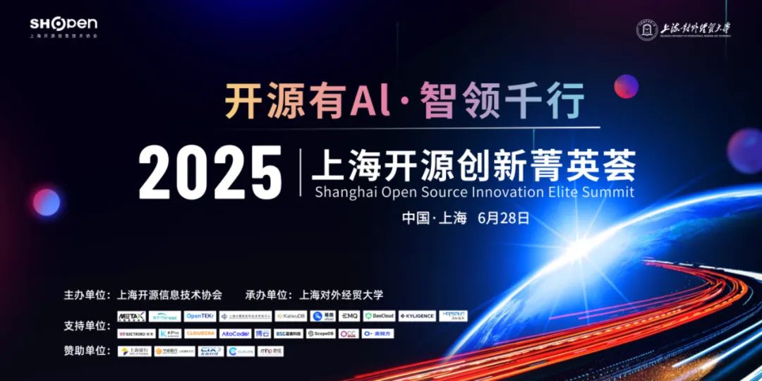 近日,由上海开源信息技术协会主办,上海对外经贸大学承办的上海开源创新年度盛会——2025上海开源创新菁英荟圆满落幕。大会以“开源有 AI,智领千行”为主题,来自开源社区、科研机构、产业界的专家学者 200 余人围绕开源如何引领千行百业智能化转变展开对话。