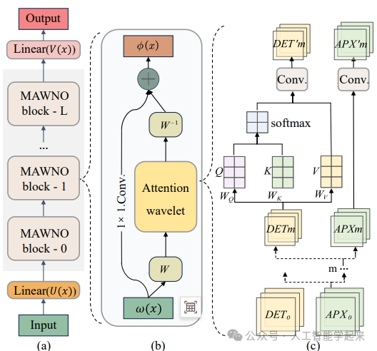 方法:论文提出了一种名为多尺度注意力小波神经算子的创新方法,该方法综合了注意力机制和小波变换技术,以有效捕捉生化系统中的急剧变化轨迹。MAWNO通过在多个小波尺度上分解输入数据来提取信号的特征,并引入自注意力机制来增强高频信号中的小波系数,从而更好地表征突然的切换。