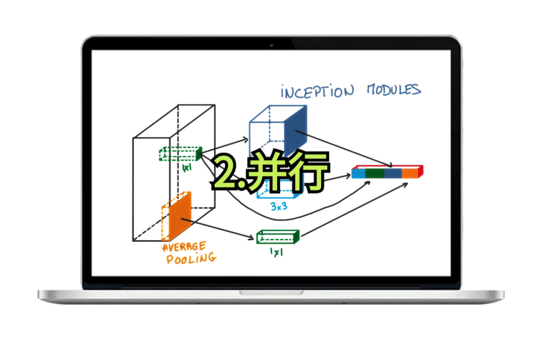 第二种:并行,将不同的网络模块同时运行,然后合并它们输出的方法,主要思想是利用多个网络模块的计算能力,通过同时处理数据来提高效率和性能,常见的有并行注意力机制和特征拼接、并行特征金字塔网络、并行卷积块等等(典型案例:GoogLeNet、ResNeXt)
