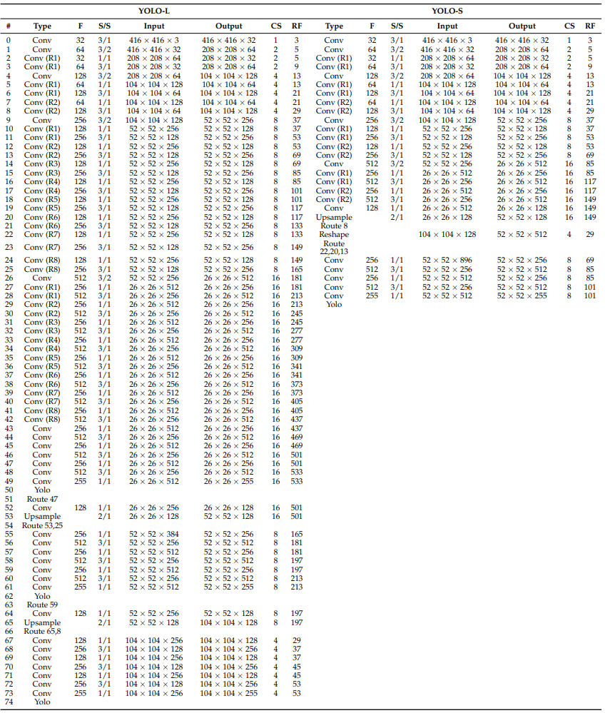 在这项工作中,提出了两种新的类YOLO架构:YOLO-L和YOLO-S,其架构如下图所示。