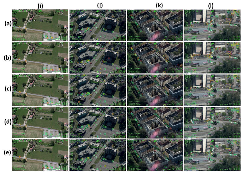 (a) YOLOv3; (b) Tiny-YOLOv3; (c) [ A Simple and Efficient Network for Small Target Detection], (d) YOLO-L; (e) YOLO-S