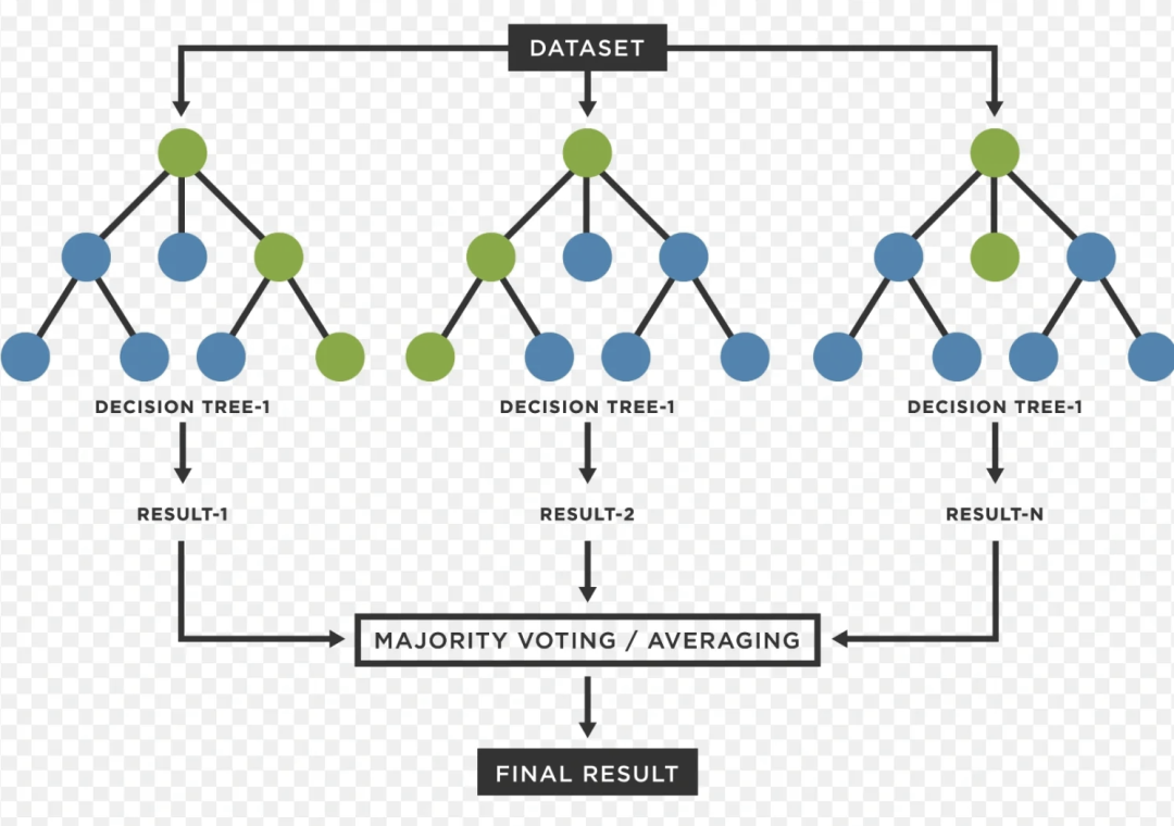 随机森林算法是基于决策树的一种算法,通过并行训练多棵决策树来提升模型的融合效果,随机森林算法比较容易过拟合,注意设置最大树深度和树的数量等