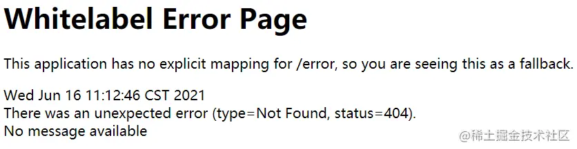 - 处理默认的 “/error ”请求,使用 Spring Boot 默认的错误页面(Whitelabel Error Page)。