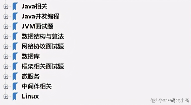 篇幅有限,另外还有 Spring(72 道)、Spring Boot(57 道)、MyBatis(63 道)、ES(74 道)、Linux(60 道)、Nginx(55 道)、Dubbo(49 道)、程序员简历、面试准备等内容。
