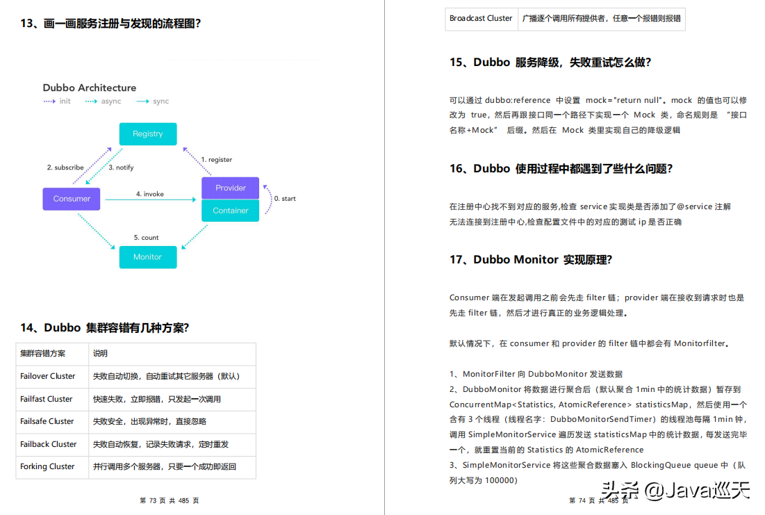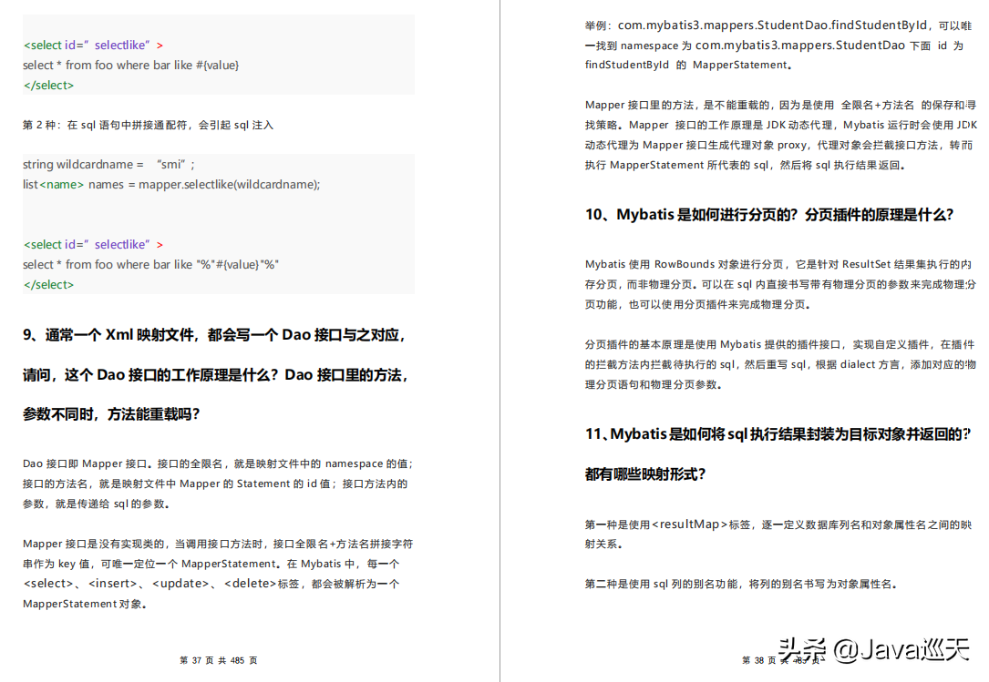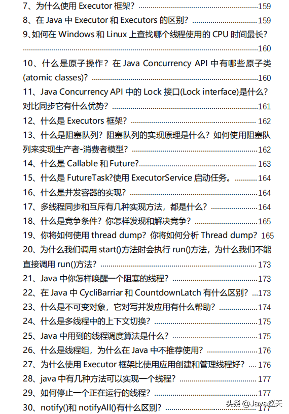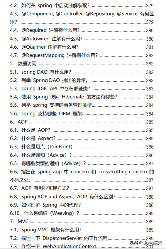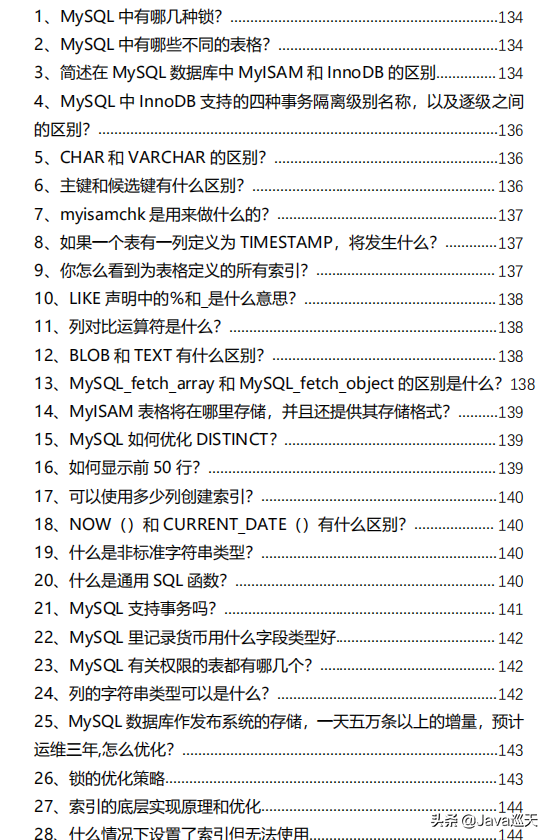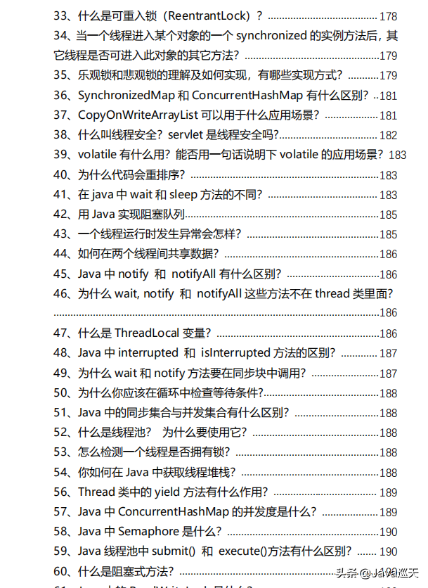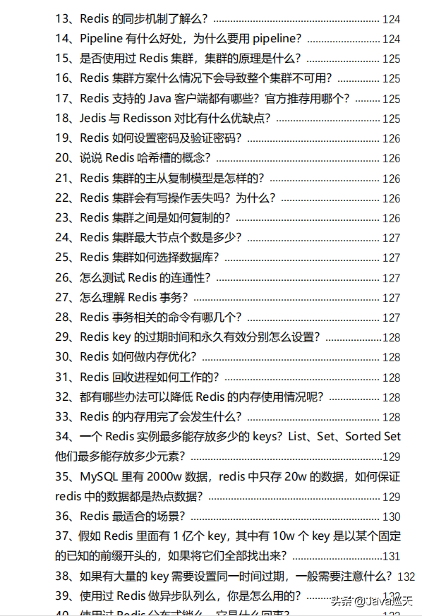 等等,内容涵盖:Java、MyBatis、ZooKeeper、Dubbo、Elasticsearch、Memcached、Redis、MySQL、Spring、Spring Boot、Spring Cloud、RabbitMQ、Kafka、Linux、并发编程等技术栈,一共485页,1000多道题。