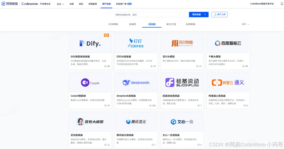 今天起,硅基流动、腾讯混元等十余个AI连接器在网易CodeWave资产市场上新!