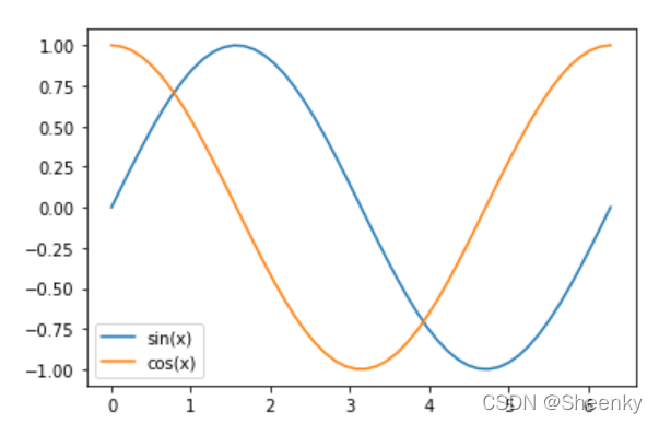 以上都是简单图形的讲解,我们现在通过一个简单的对数据DataFrame进行作图,在往后的数据可视化中我们需要对数据进行处理后再进行可视化。下面我们通过正、余弦函数进行作图。