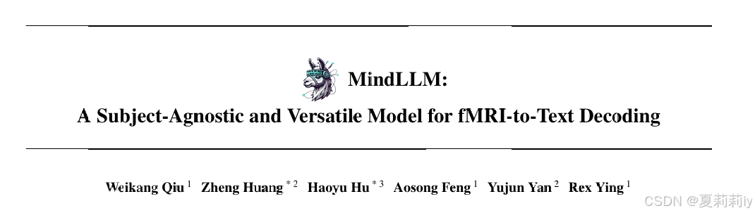 论文网址:[2502.15786] MindLLM: A Subject-Agnostic and Versatile Model for fMRI-to-Text Decoding