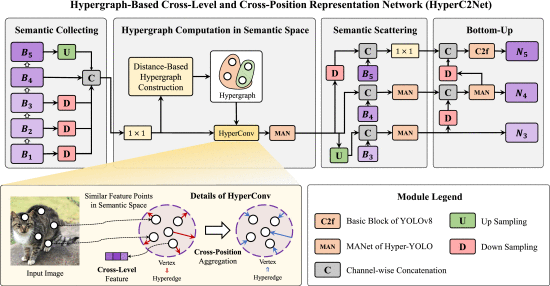 ①Pipeline of proposed Hypergraph-Based Cross-Level and Cross-Position Representation Network (HyperC2Net):