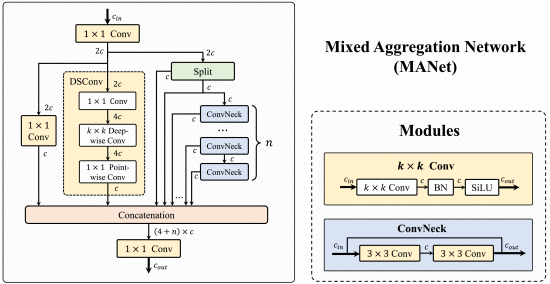 ①Three scale outputs of the neck: , which are small-scale, medium-scale, and large-scale feature map