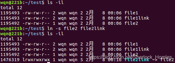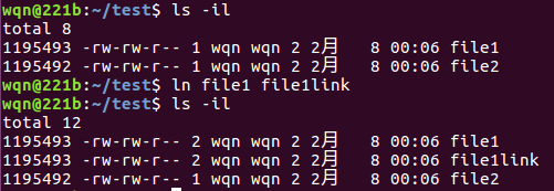 ln file2 /home/wqn/file2link
