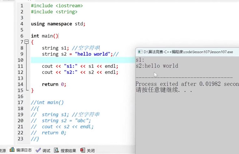 - string s1 表⽰创建空字符串,相当于创建整型 int a ,但未给 a ⼀个初始值。