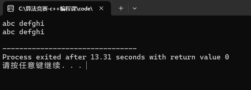 这里我们可以发现,其实cin的方式给string类型的字符串中输入数据的时候,可以输入不带空格的字符串。但是如果带有空格,遇到空格也就读取结束了,没有办法正常读取。那么怎么办呢?解决办法就是使用getling。
