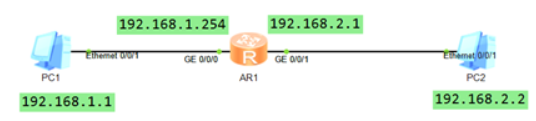 [Huawei-GigabitEthernet0/0/1]ip address 192.168.2.1 24
