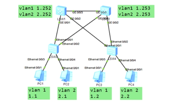 [sw1-Vlanif1]ip add 192.168.1.252 24 //配置ip