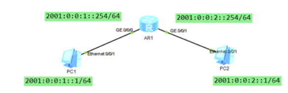 [Huawei-GigabitEthernet0/0/1]ipv6 address 2001:0:0:2::254 64