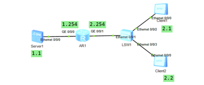 [Huawei-GigabitEthernet0/0/1]ip address 192.168.2.254 24 //配置ip