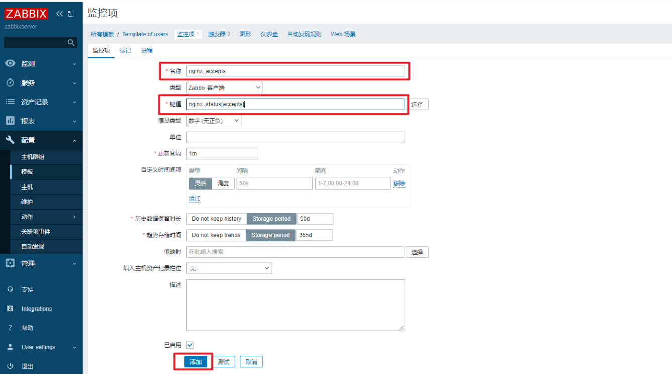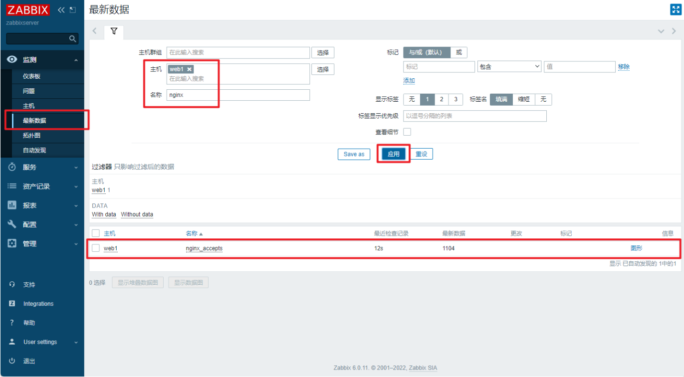 [root@web1 ~]# zabbix_get -s 127.0.0.1 -k nginx_status[accepts]