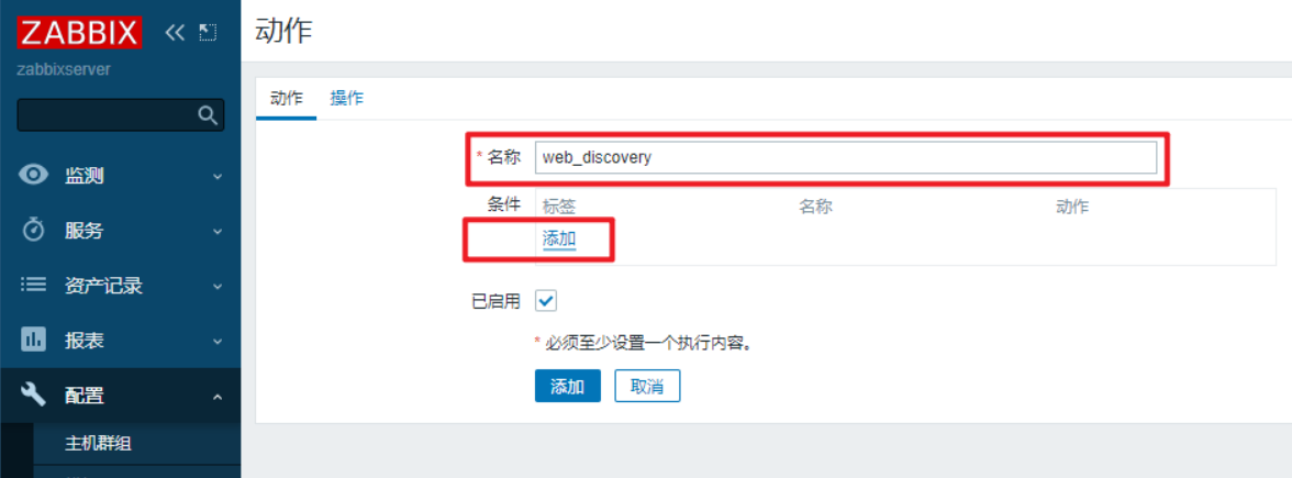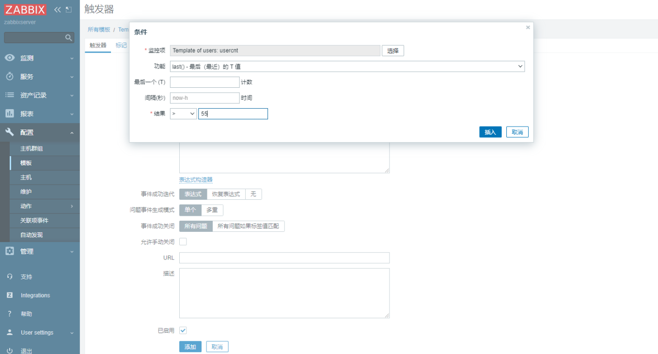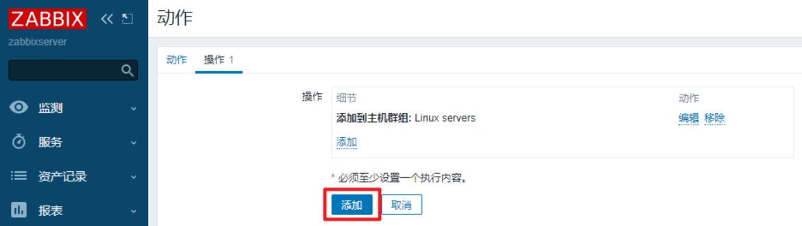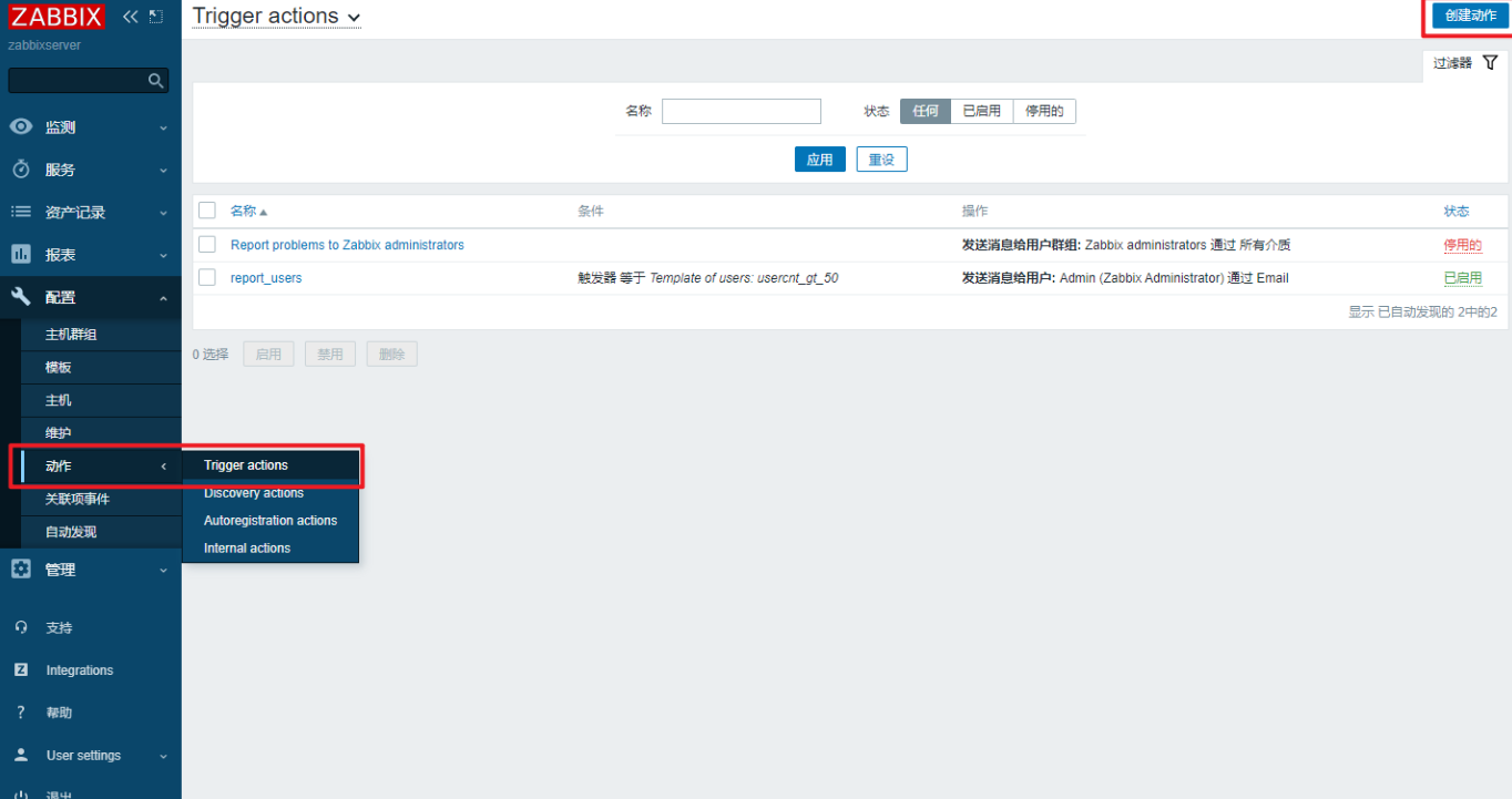 - 动作:触发器条件达到之后要采取的行为,比如发邮件或执行命令