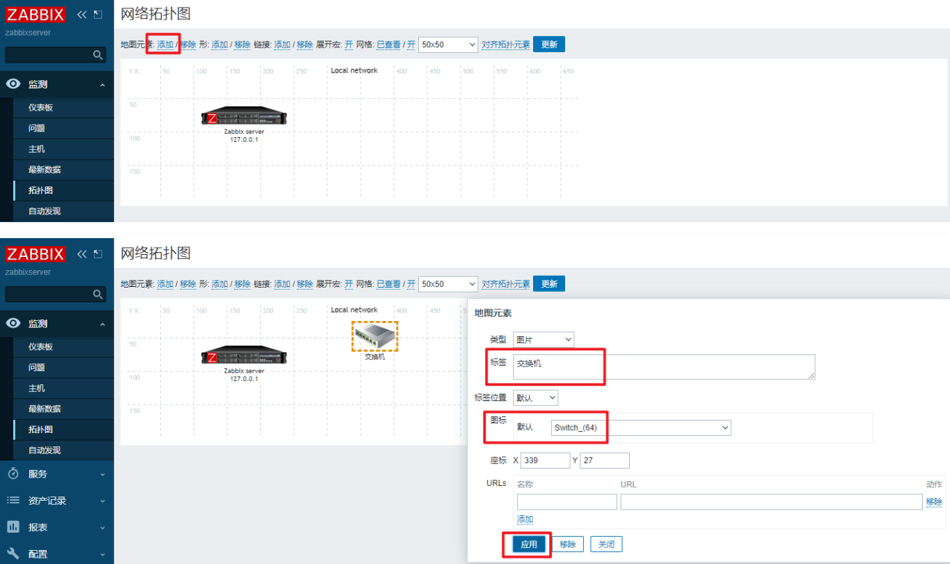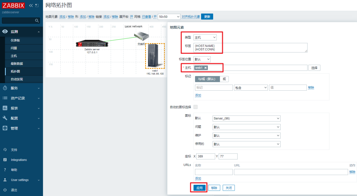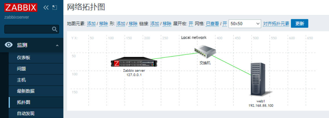 - 在zabbix中可以创建拓扑图,反映拓扑结构