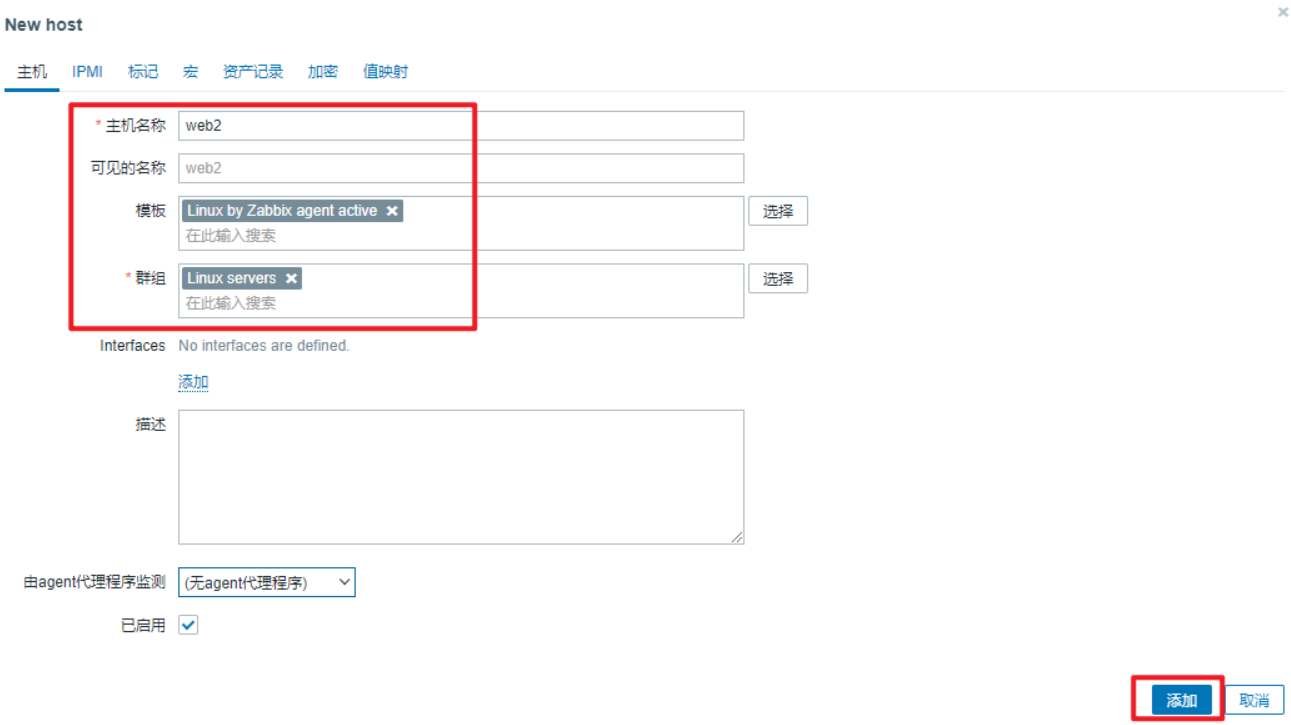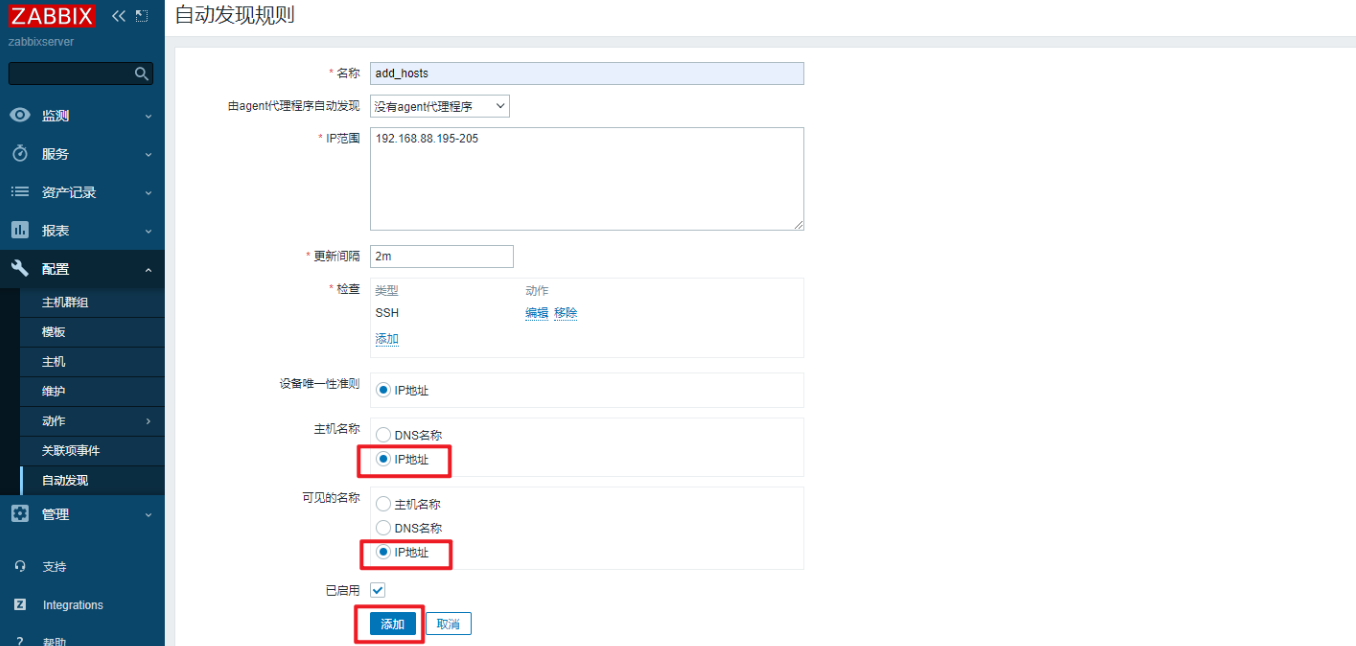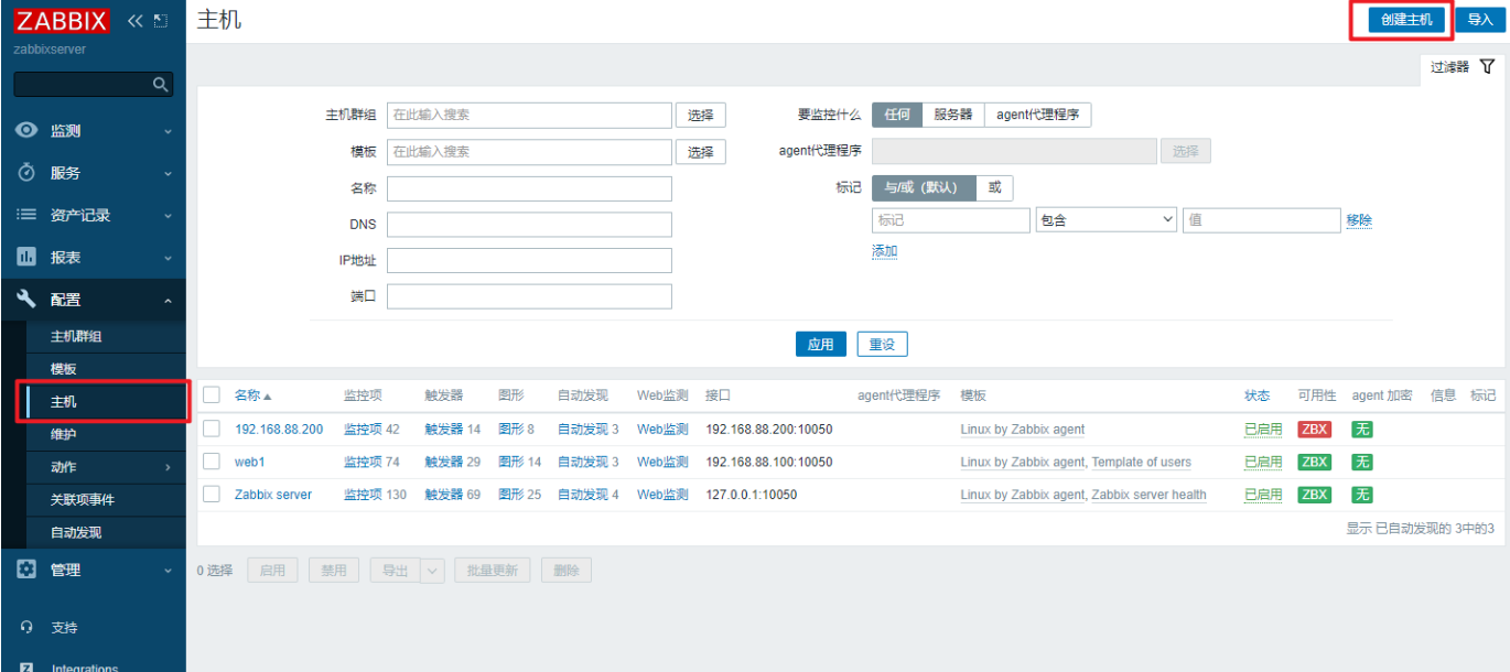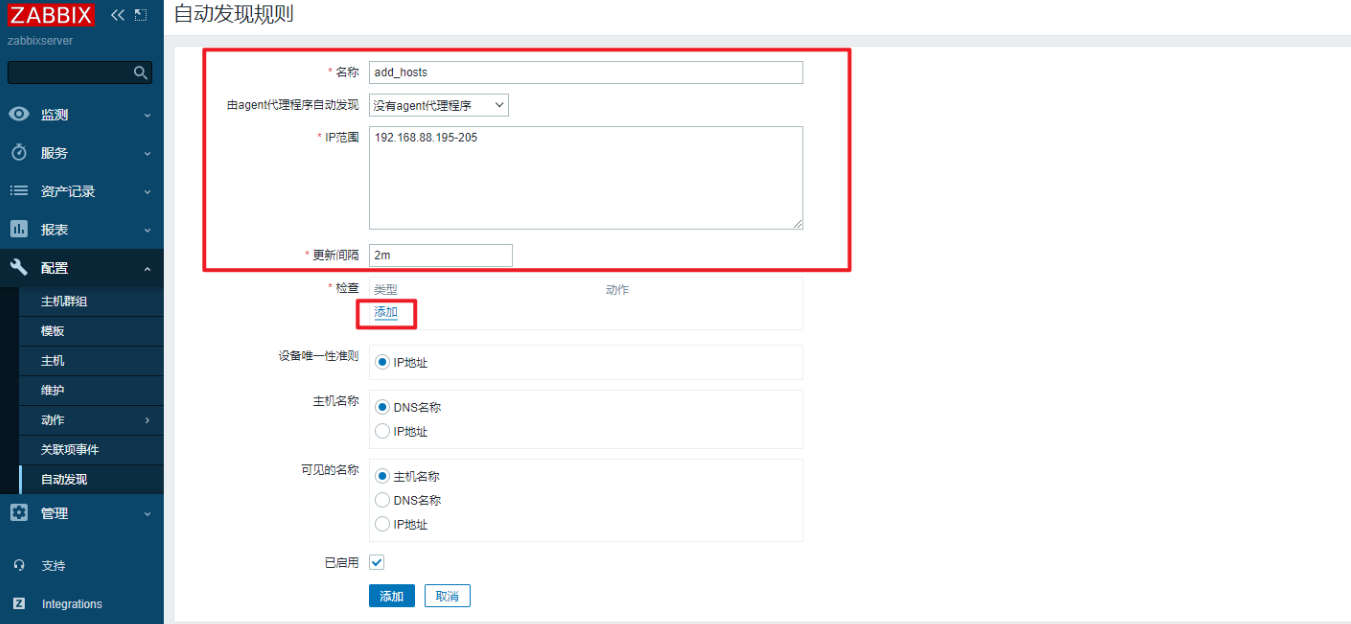 可以使用自动发现功能,实现添加主机、添加到主机组、 链接模板