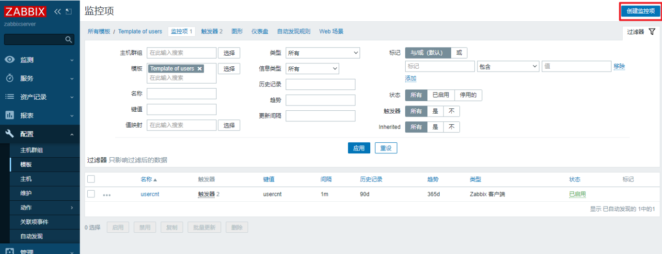[root@web1 ~]# zabbix_get -s 127.0.0.1 -k usercnt
