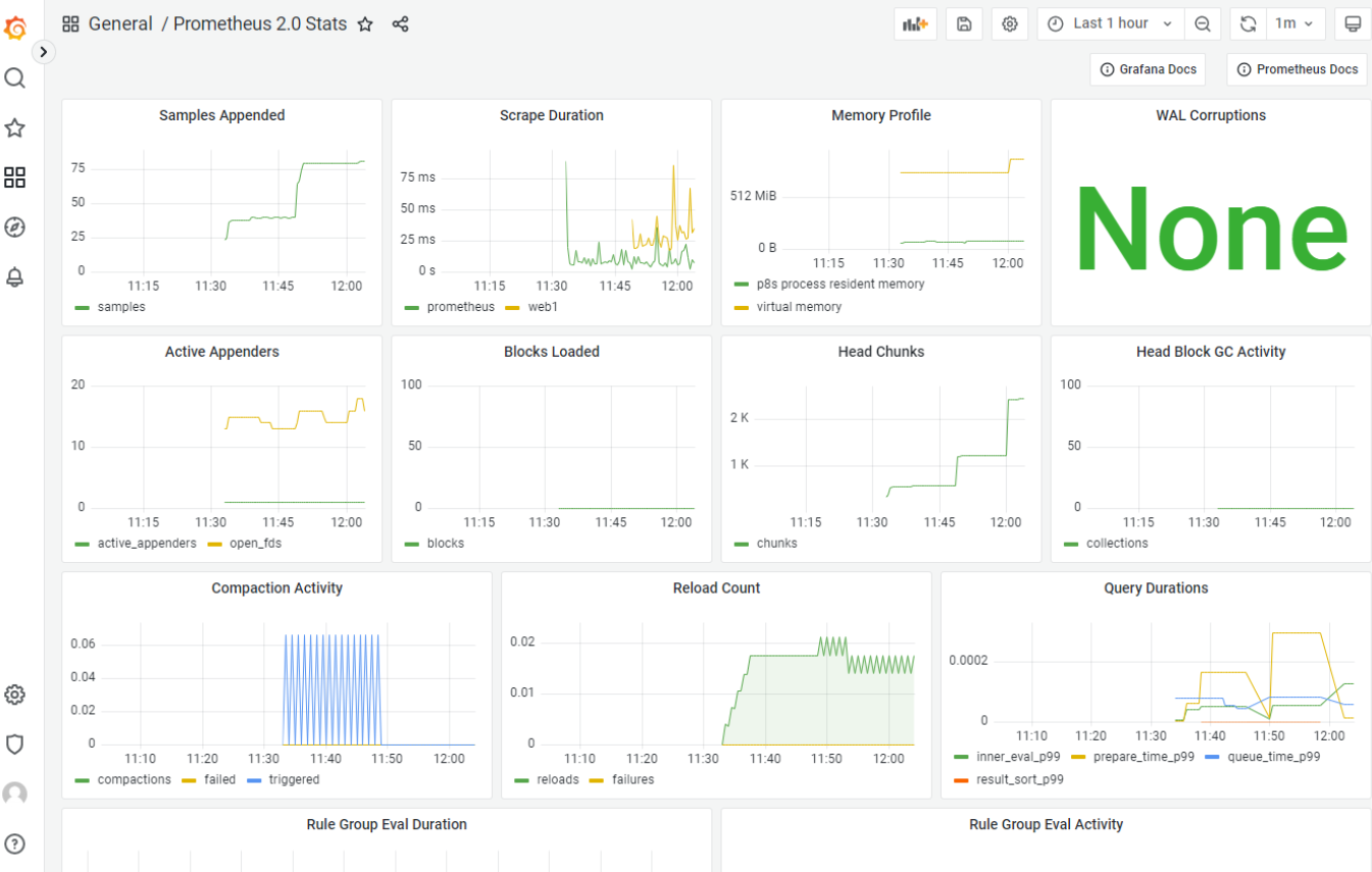 global、rule_files和scrape_configs。 global块控制 Prometheus 服务器的全局配置。我们有两个选择。第一个,scrape_interval控制 Prometheus 抓取目标的频率。您可以为单个目标覆盖它。在这种情况下,全局设置是每 15 秒抓取一次。该evaluation_interval选项控制 Prometheus 评估规则的频率。Prometheus 使用规则来创建新的时间序列并生成警报。rule_files块指定我们希望 Prometheus 服务器加载的任何规则的位置。现在我们还没有规则。- 最后一个块,