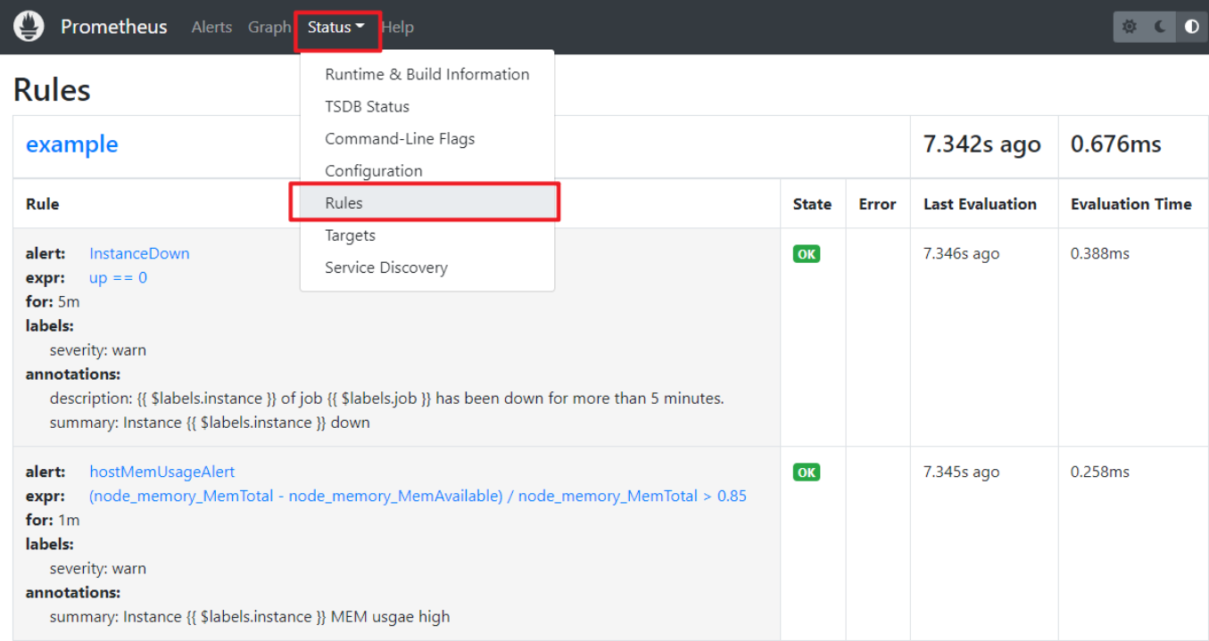 [root@prometheus ~]# mkdir /usr/local/prometheus/rules