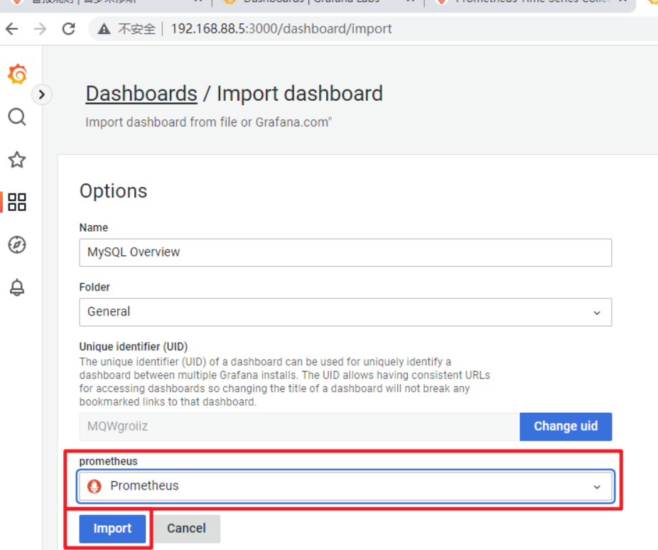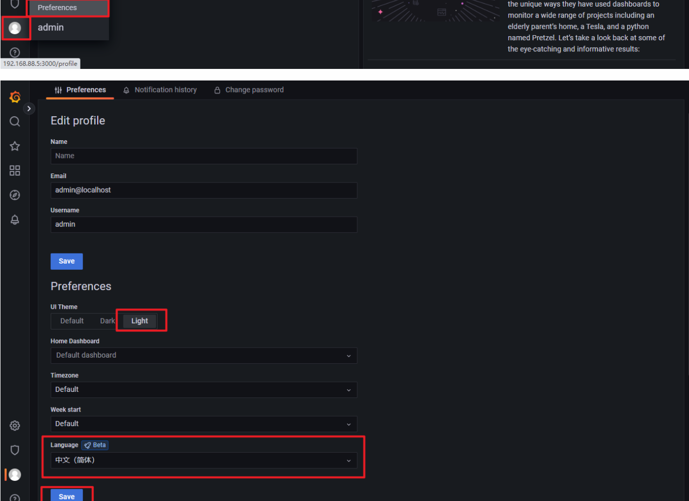 - 初始化。访问http://192.168.88.5:3000。初始用户名和密码都是admin。第一次登陆时,要求改密码,本例中密码改为tedu.cn。如果登陆报错,请更换其他浏览器。