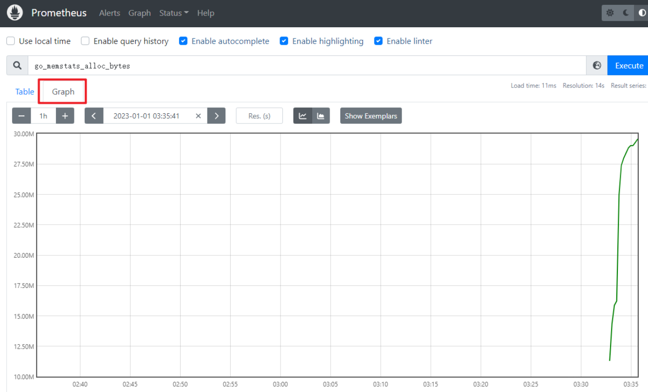 - 查看监控自身的数据,如分配置给Prometheus运行的内存数量