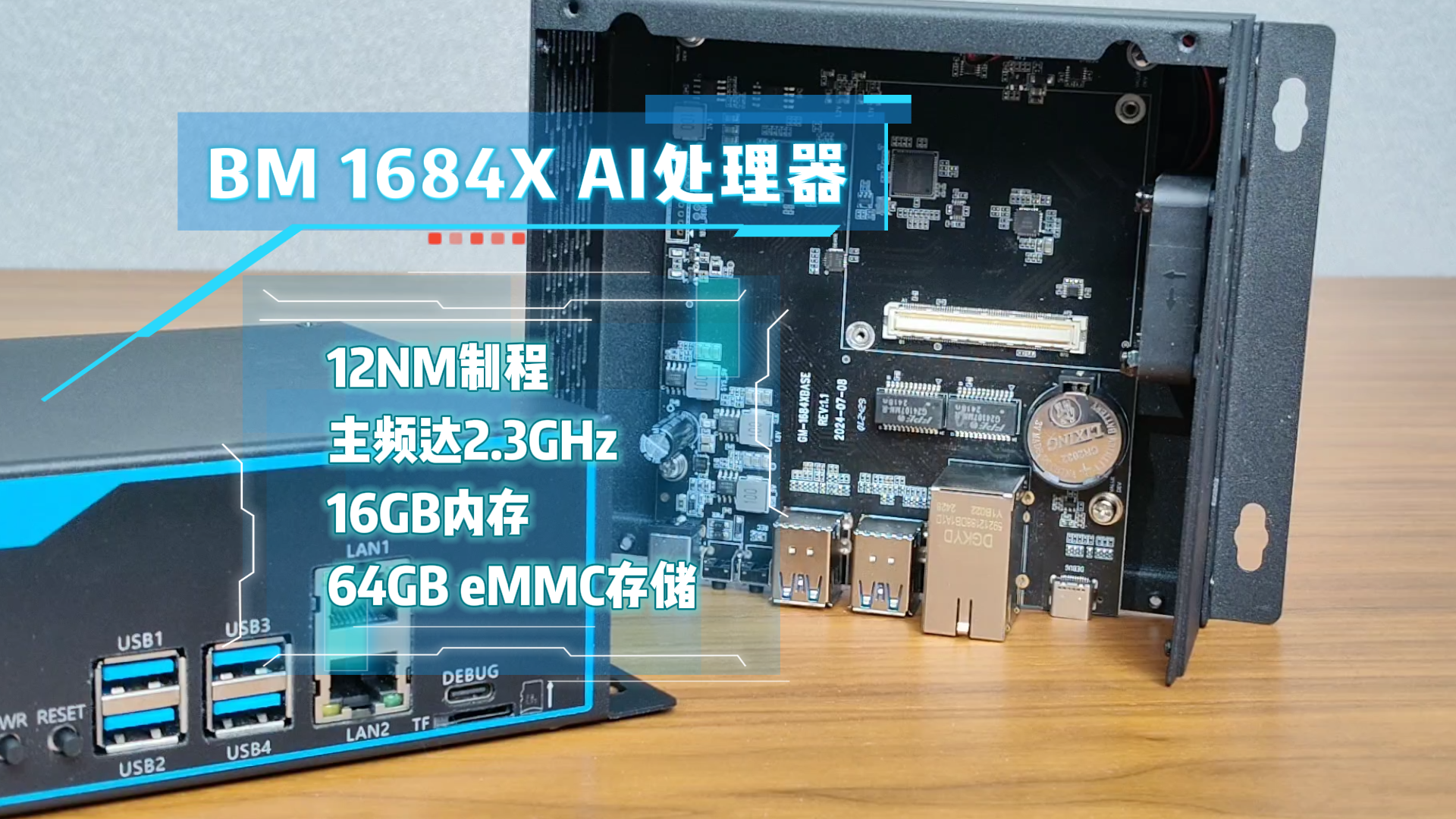 AIBOX-1684XB-32 是一款专为视觉类任务设计的边缘算力盒子,它集成了算能 AI 处理器 BM1684X,配置 16GB 大内存以及 64GB eMMC;支持 32TOPS( INT8 ) 峰值算力。