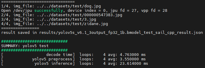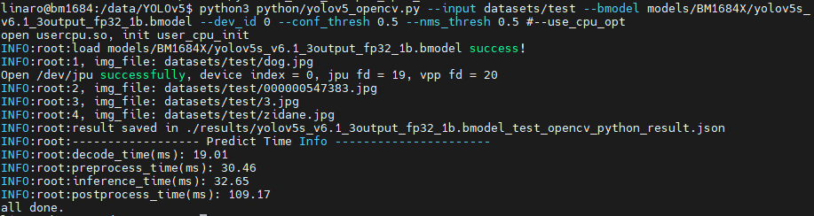 python3 python/yolov5_opencv.py --input datasets/test --bmodel models/BM1684X/yolov5s_v6.1_3output_fp32_1b.bmodel --dev_id 0 --conf_thresh 0.5 --nms_thresh 0.5
