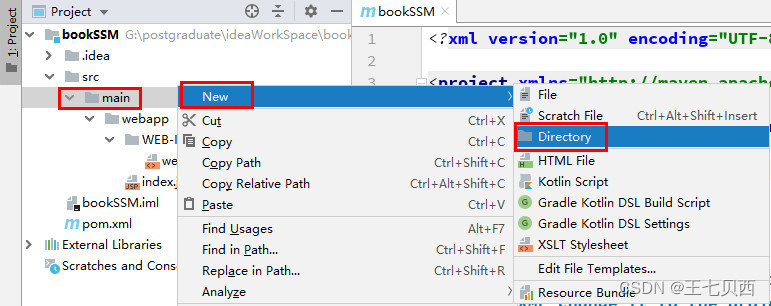 首先选择【main】文件夹,右击->【New】->【Directory】
