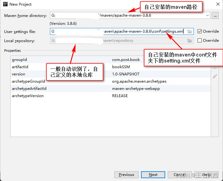 5、分别选择【Maven home directory】,【User setting file】,然后点击【Next】