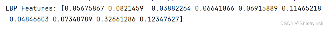 np.histogram函数统计LBP值在整个图像中出现的频率,并生成256维的特征向量。- 这种统计方法能够反映图像的整体纹理分布,有助于图像的分类和识别。