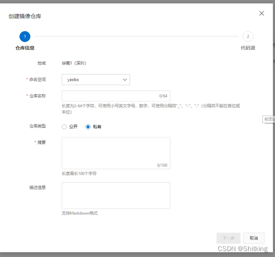 首先搜索阿里云容器镜像服务,选择个人实例,创建镜像仓库。