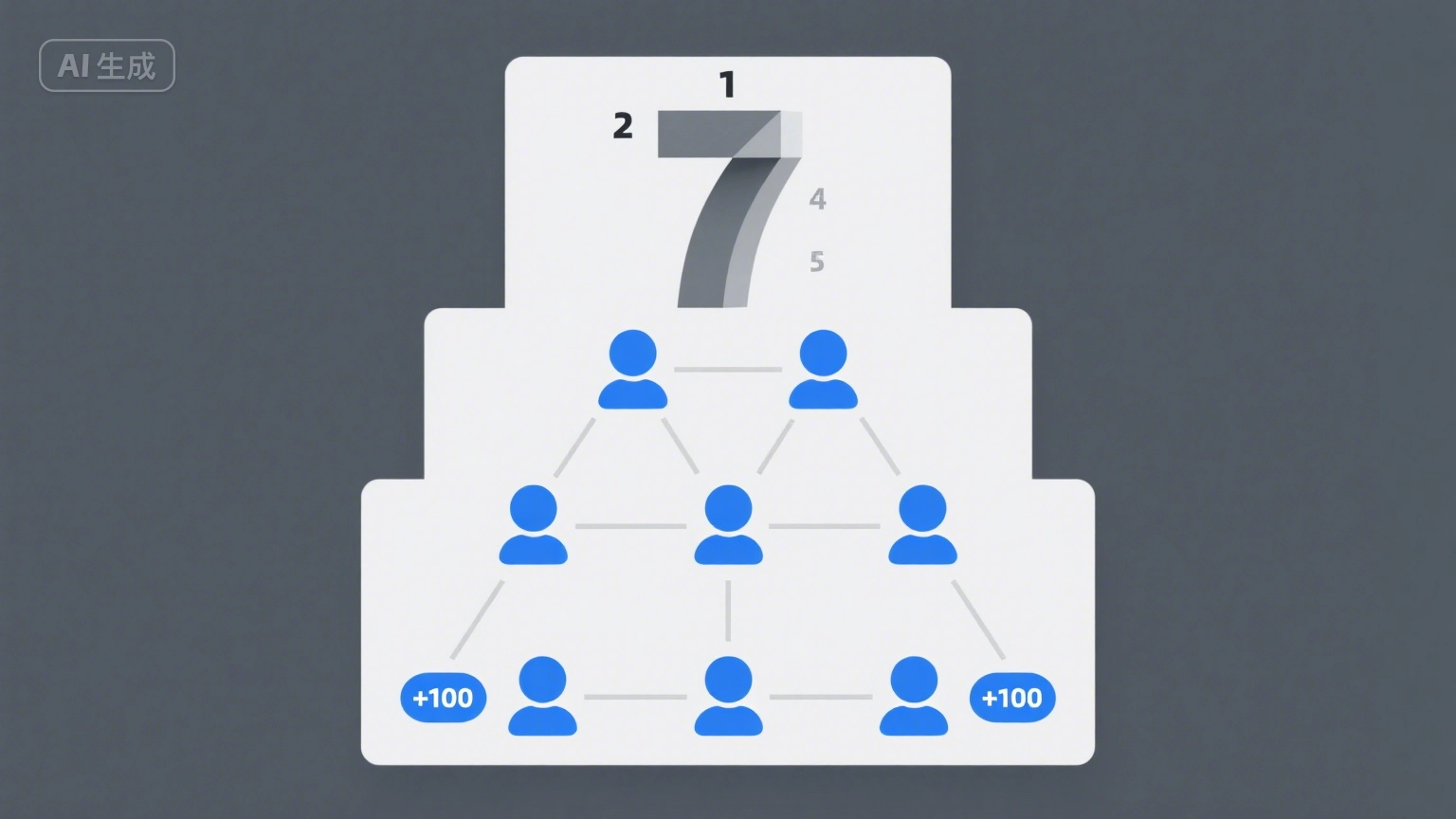 “7” 是成团的核心数字。团队搭建遵循固定路径:以一号位为起点,推荐二、三号位后,后续推荐的 4 号会自动归属 2 号位;待三号位推荐六、七号位后,整个 7 人架构完成,一号位达成成团条件,此时可获得相应的点位奖励。这种 “自动滑落” 的机制,既保证了团队扩张的有序性,又让目标可视化。