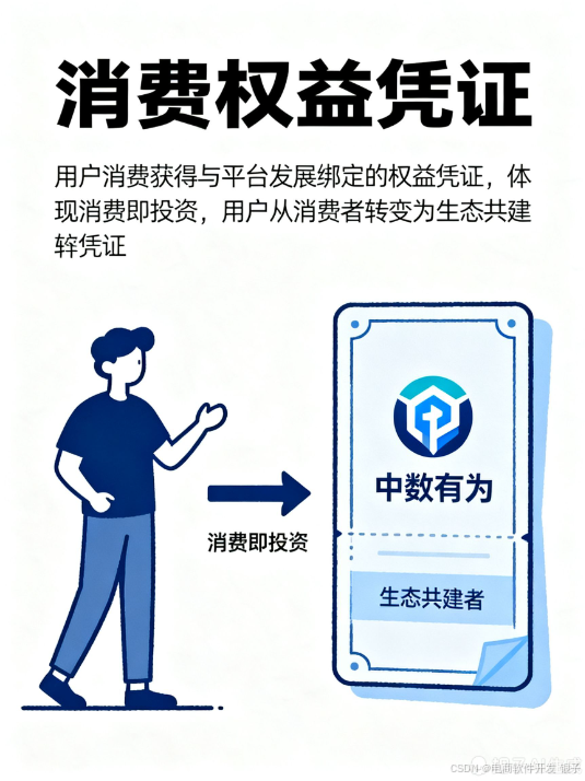 中数有为最具突破性的创新在于引入了"消费权益凭证"概念。用户在消费的同时,还能获得平台的权益凭证,这些凭证与平台发展深度绑定。