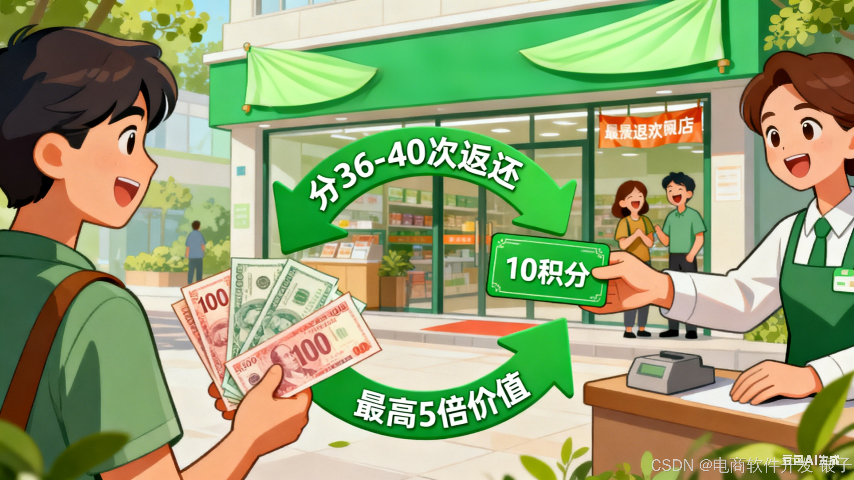 商家拿出一部分利润,3% - 20%变成积分。这些积分不会一下子给顾客,而是像细水长流一样,分36 - 40次慢慢变成消费券,而且最高能变成原来5倍的价值。