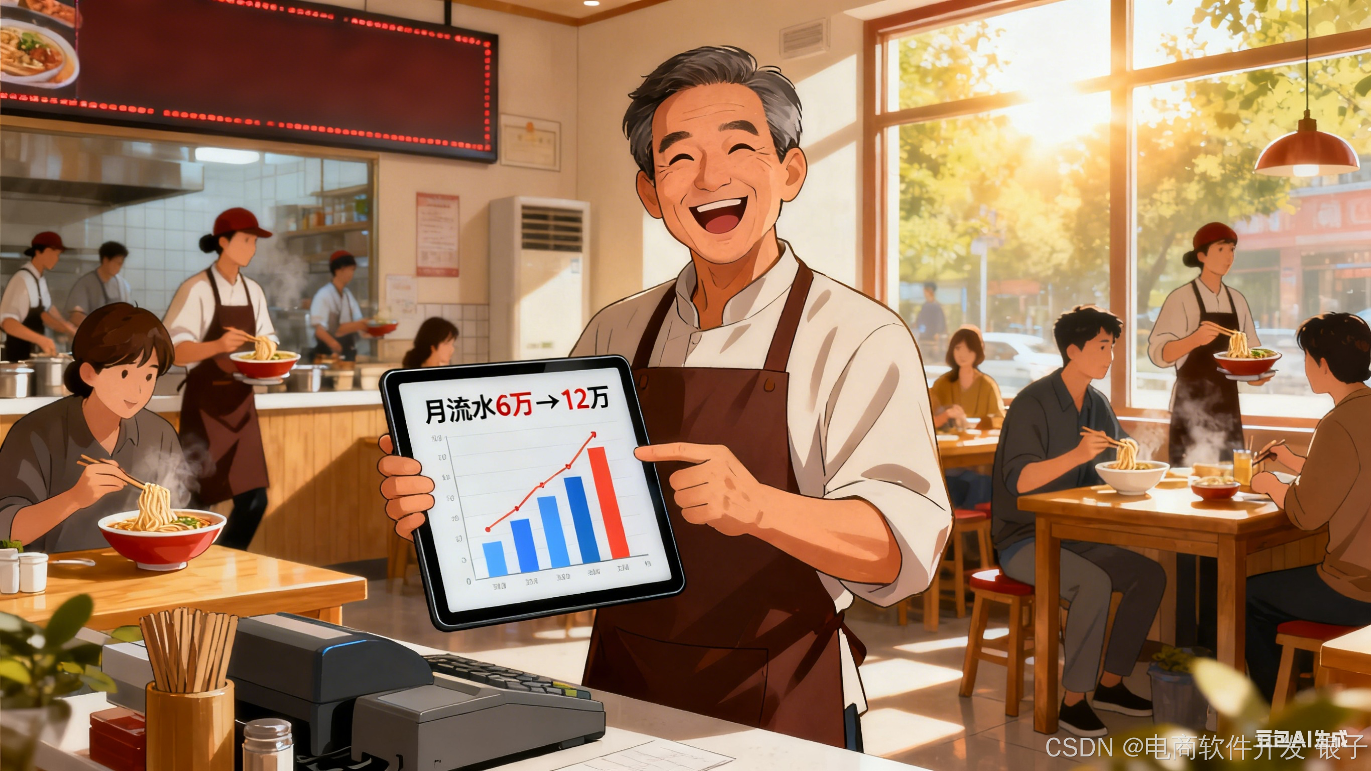 有个面馆用了这个模式,一个月的流水从6万涨到了12万,6个月就把投入的钱赚回来了。