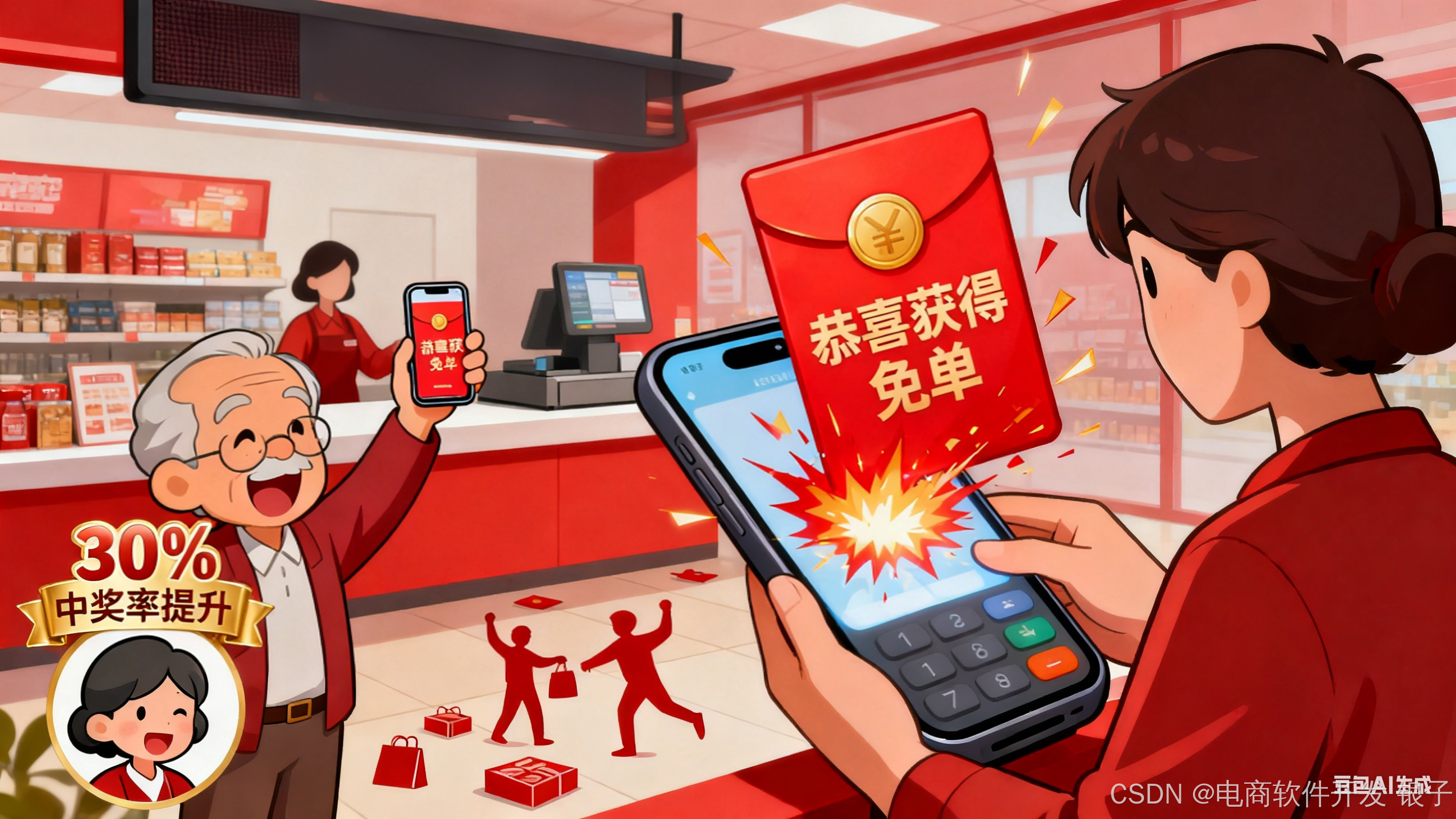 。而且有个聪明的算法,会让老顾客更容易抽到大的红包,比如老顾客抽到免单的机会能提高30%。