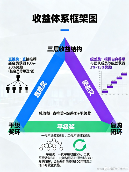 3. 平级奖与复购闭环:形成"消费-晋升-收益"循环