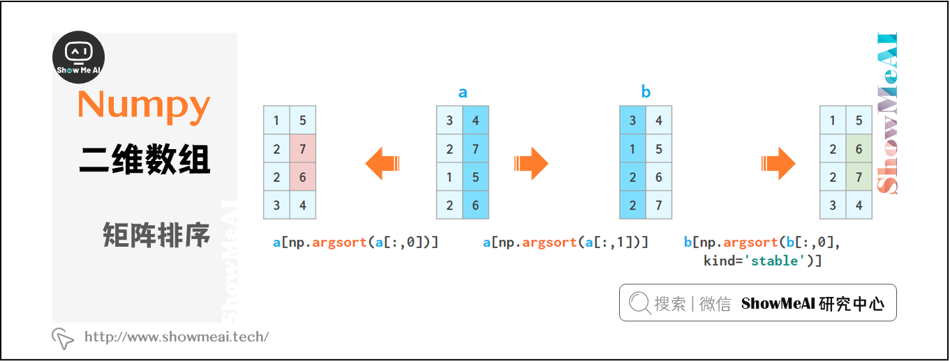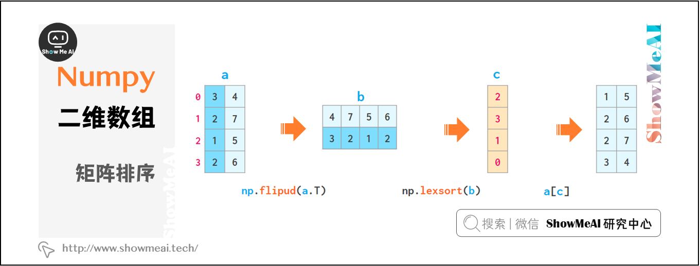 a[np.lexsort(np.flipud(a[2,5].T))],首先按第2列排序,然后按第5列排序;a[np.lexsort(np.flipud(a.T))],从左到右依次排序各列。
