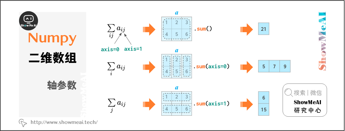 在很多矩阵运算操作中,NumPy可以实现跨行或跨列的操作。为了适用任意维数的数组,NumPy引入了axis的概念。