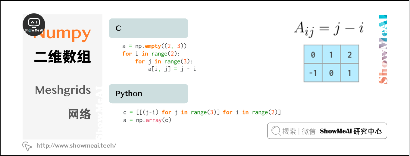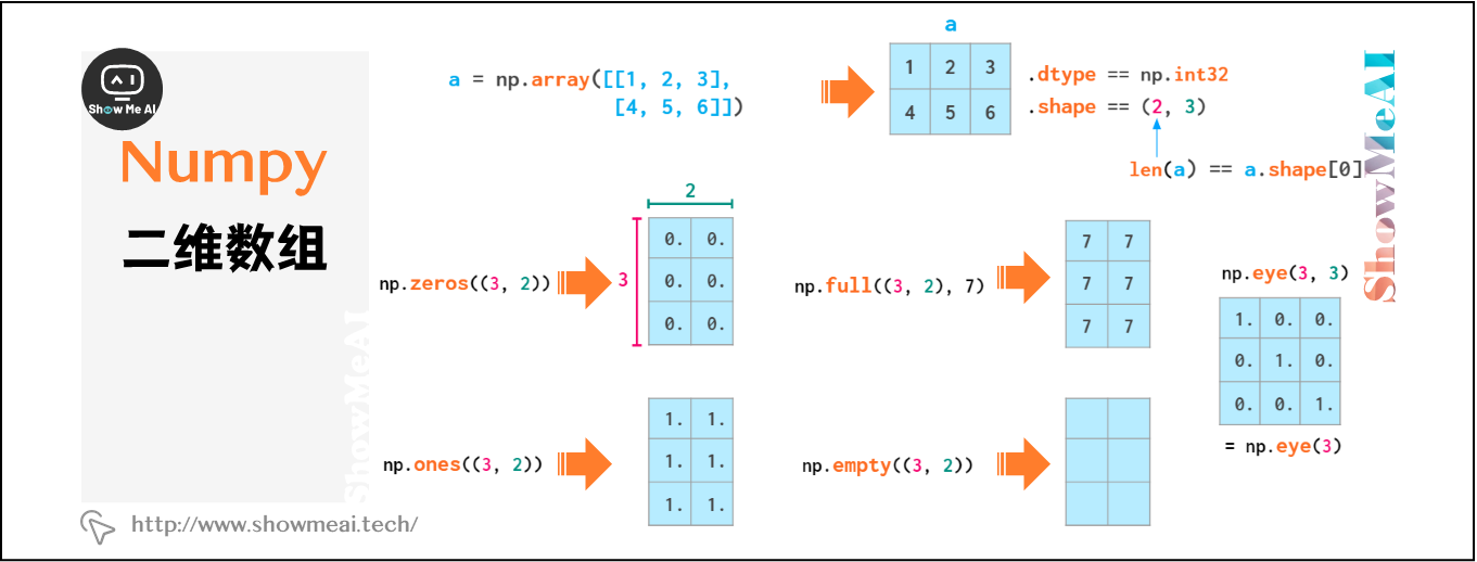n维数组是NumPy的核心概念,大部分数据的操作都是基于n维数组完成的。本系列内容覆盖到1维数组操作、2维数组操作、3维数组操作方法,本篇讲解Numpy与2维数组操作。