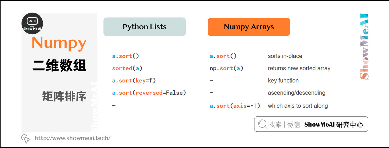 | Numpy 速查表 | ![]() | 一键运行速查表代码 - Numpy |
